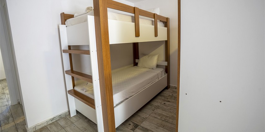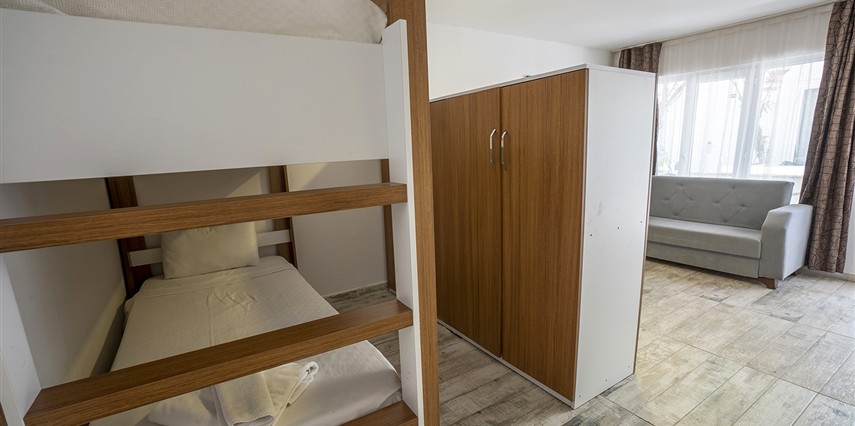 Girişte 1 adet açılabilir koltuk, TV ünitesi ile ayrılmış ranza ve ebeveyn odası bulunmaktadır.